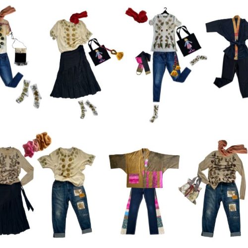 a collage image of different variations of the la creative mama minimal waste sewing pattern kimono inspired top made from the students who have taken the course and purchased the pattern.