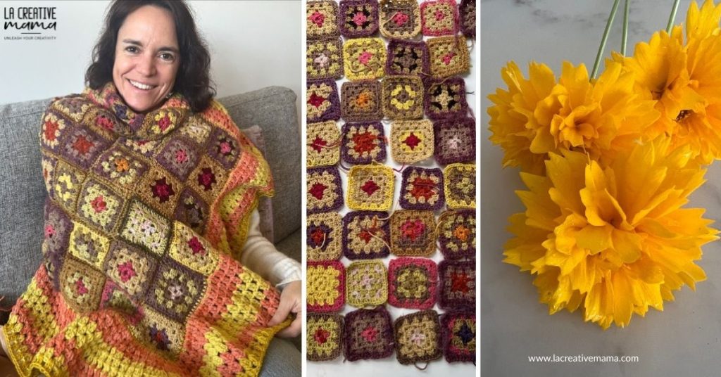 The photo below shows a a variety of wool yarn naturally dyed with different natural dyes. It made a crochet blanket by creating granny squares with samples that I created while teaching my classes and workshops (online and in person workshops).