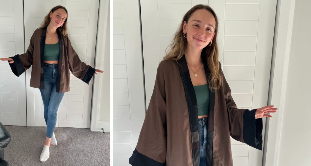 “Hi Victoria. I finished my kimono! Thanks for inspiring me to sew this comfortable piece. I will be making another kimono soon. It is a great layering garment! Thanks for creating this pattern and course!” – Elia